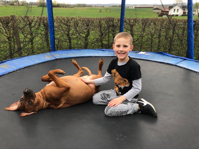 Er war bei uns zu Hause und hat sich dort sowohl im Umgang mit unseren Kindern als auch mit unserem anderen Hunden sehr freundlich und gleichzeitig unglaublich souverän verhalten. Man hat das Gefühl,